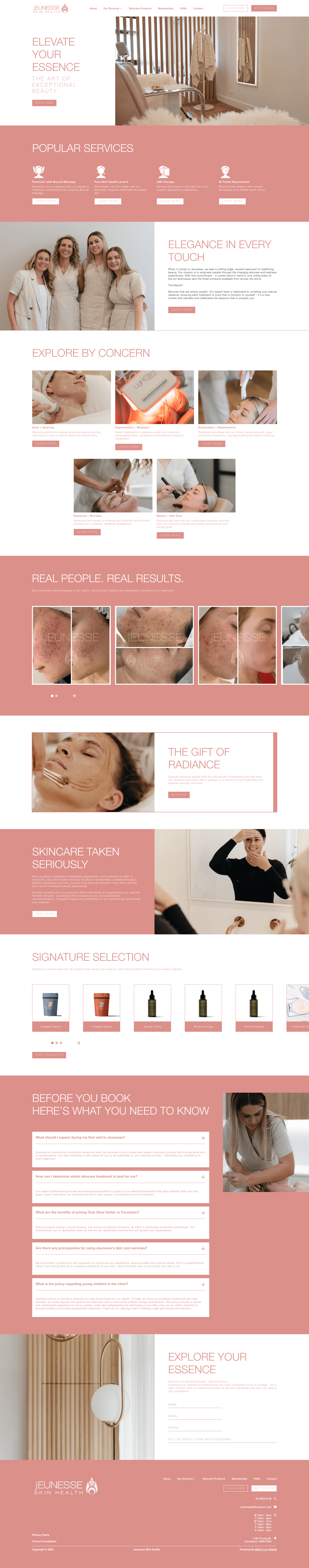 Introducing Jeunesse Skin Health: Elevating Skincare Experience Jeunesse Skin Health offers premium skincare services to its clientele, catering to a niche market with specialized offerings. Designing this website, my main focus was on capturing the attention of our specific target audience within the community.